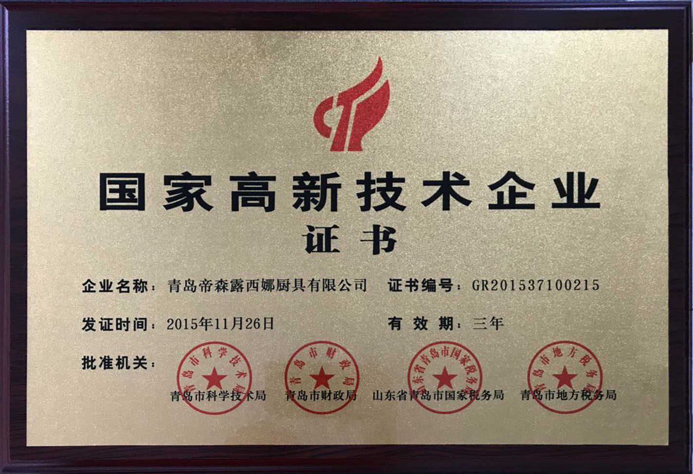 國家高新企業證書